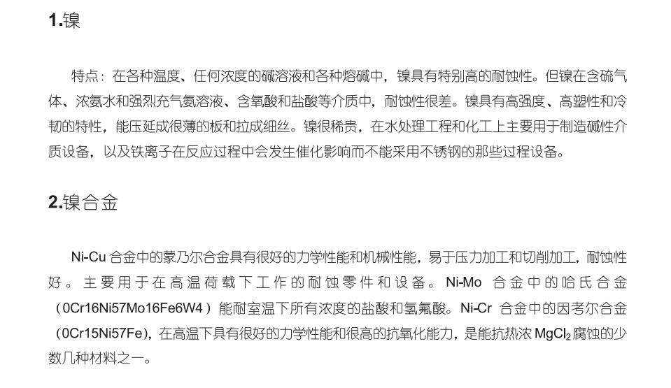 工業(yè)上鋼鐵稱為黑色金屬,除鋼鐵以外的金屬稱為有色金屬。有色金屬及其合金因具有良好耐腐蝕性和低溫性能,常用來制造水處理、化工容器及有關(guān)的設(shè)備零件部。
